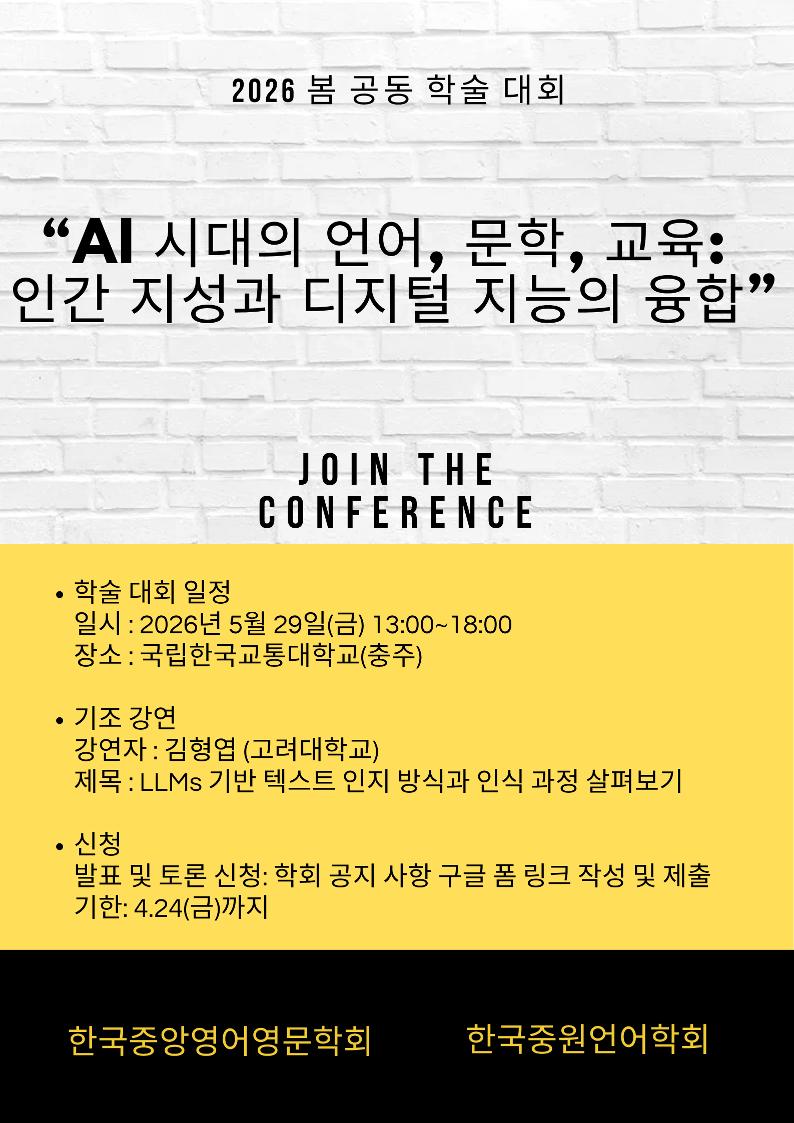영어 관련 학문의 제 분야에 관한 연구활동과 학술활동을 통해 한국에서의 영어영문학 연구를 활성화하는 것은 물론, 나아가 한국 문화의 창달과 보급에 기여함을 목적으로 하는 학술단체입니다.