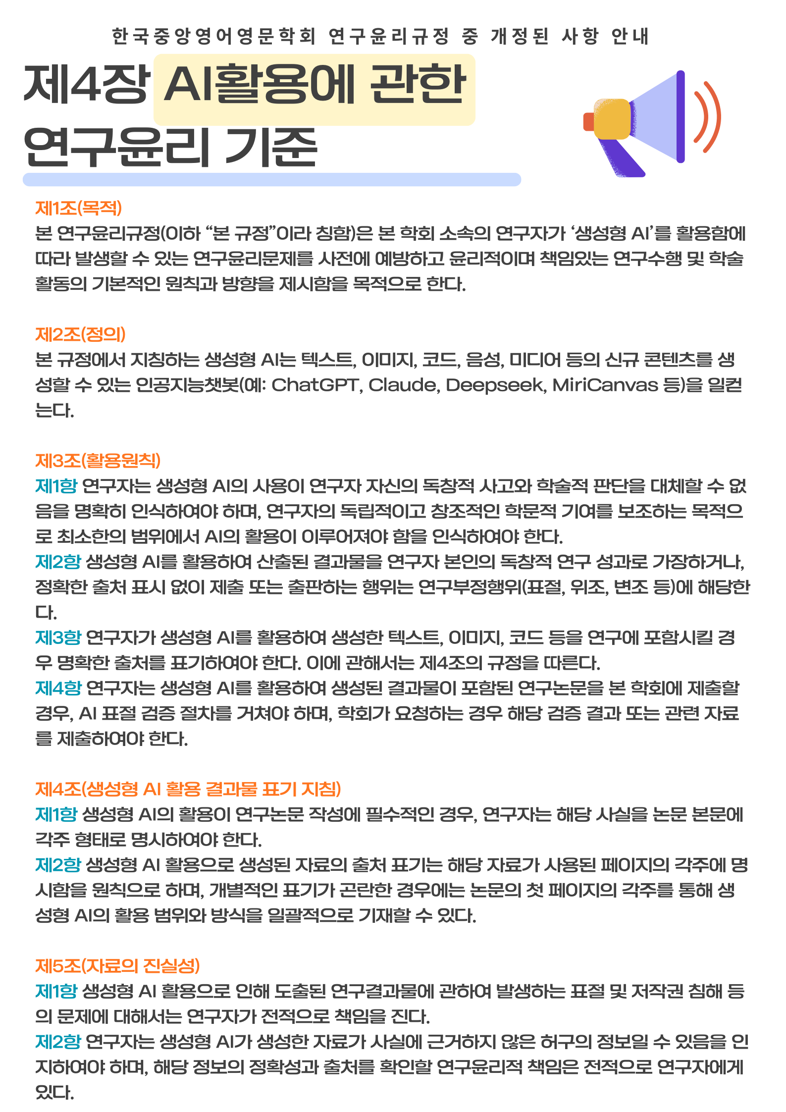 본 학회는 건전한 연구윤리 정착과 진정한 학문 발전에 기여하도록 노력하겠습니다.